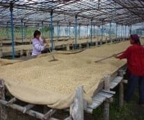 乾燥工程ではコーヒー豆をコンクリートの土間に直接敷いて乾燥させるのではなく、高床式の天日乾燥場で9~10日かけてすべて天日によって乾燥させるやり方で品質を重視しています。