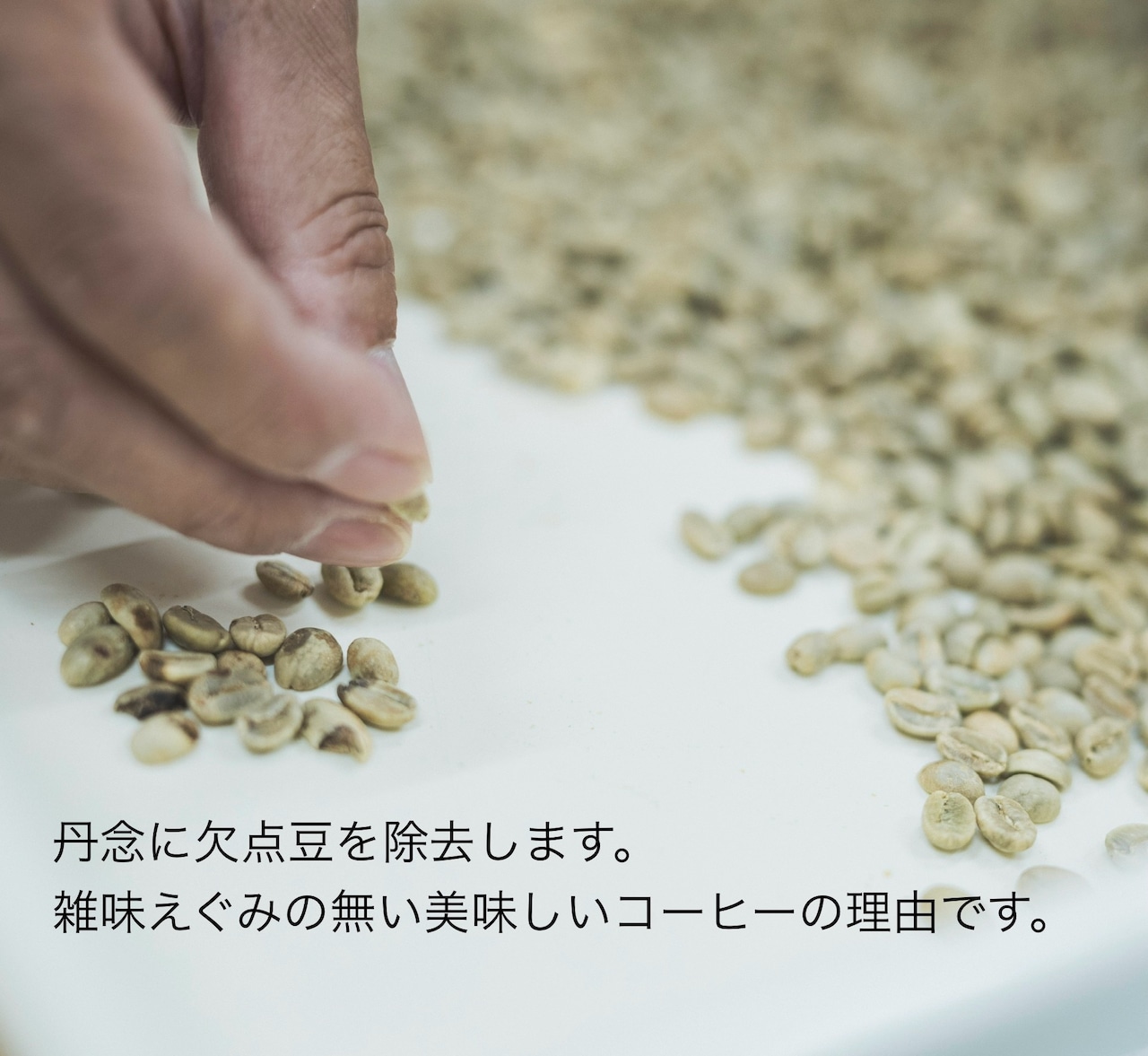 丹念にハンドピックして欠点豆を取り除き、雑味えぐみのないクリアで美味しいコーヒーになっております。