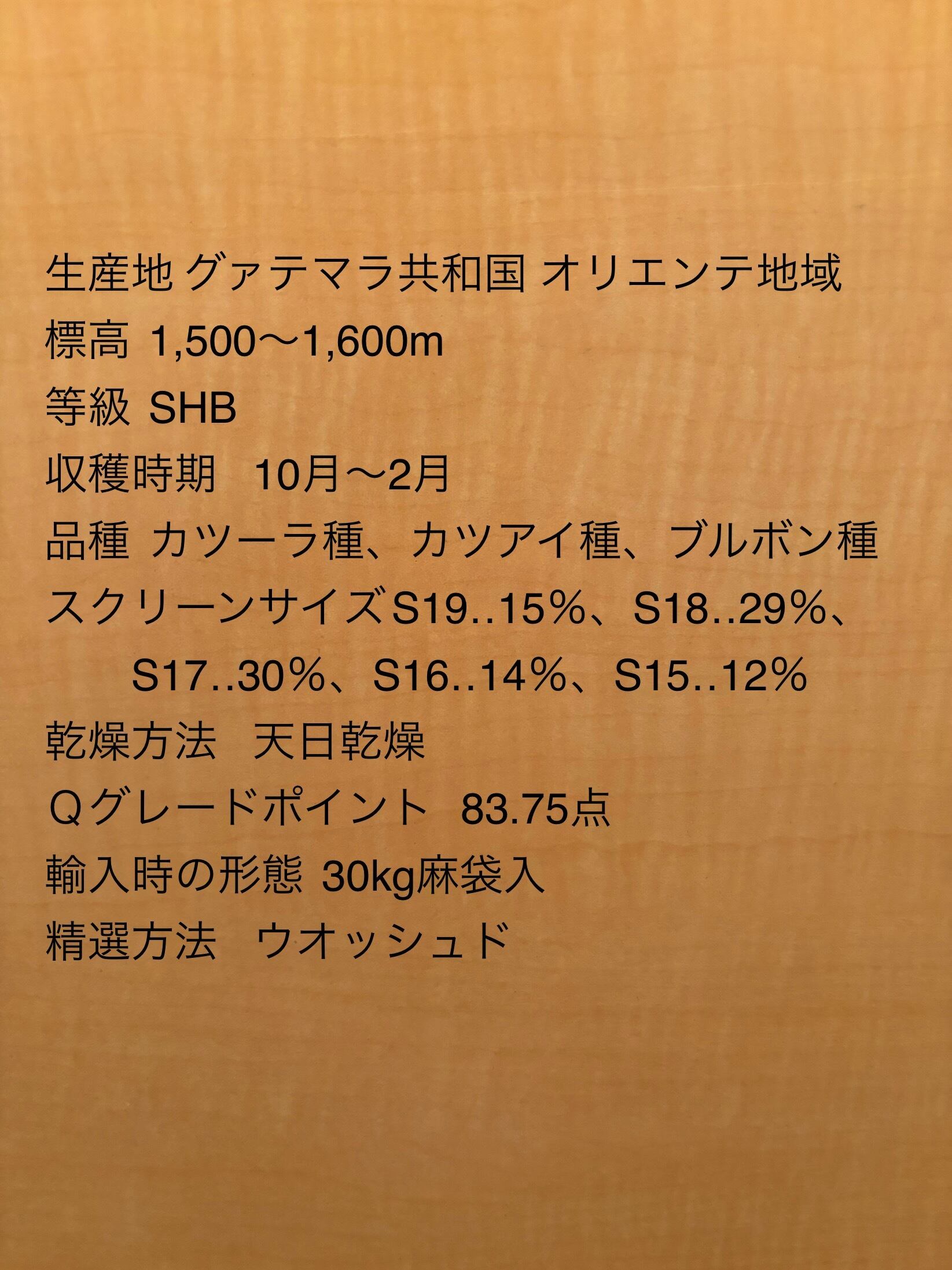 スペシャリティグレード: アメリカスペシャリティ協会(SCAA)の基準による判定で83.75点を獲得しております。(Qgrade)